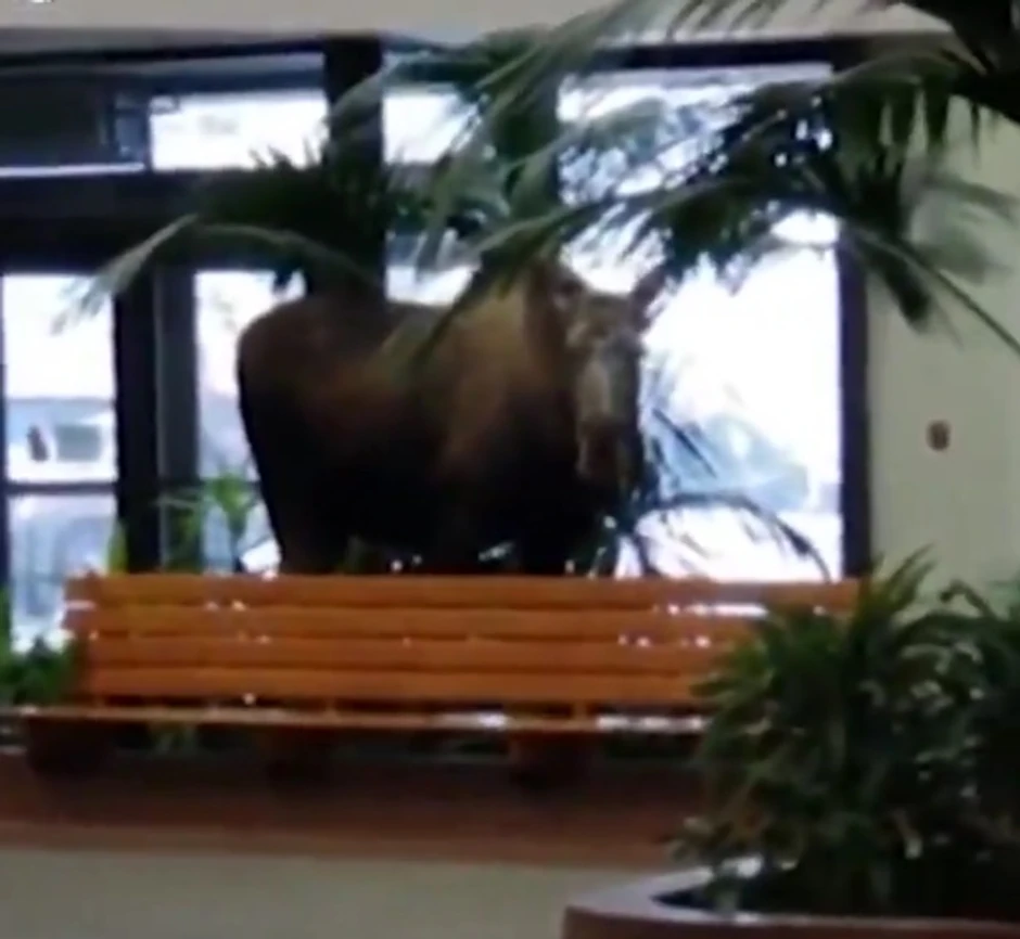 Ogroman los zalutao je danas u zgradu bolnice u Enkoridžu, najvećem gradu na Aljasci, a čim je ušetao namirisao je "užinu" - dekorativno bilje u holu, dok su pacijenti i zaposleni u čudu i strahu posmatrali životinju pozamašne veličine.