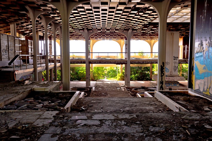 Danas je unutrašnjost, koja je nekada bila puna skupocenog udobnog nameštaka i ukrasa, puna stakla, komada betona, a zidovi su obrasli u korov.