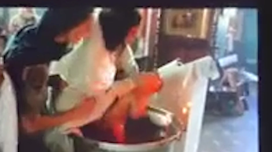 Ruski pravoslavni sveštenik Fotij Nečeporenko (55), koji je služio u crkvi u Gačini blizu Sankt Peterburga, suspendovan je na godinu dana nakon što se pojavio video-snimak na kom se vidi kako "mlatara" bebom za vreme krštenja, dok je novorođenče vrištalo od užasa.