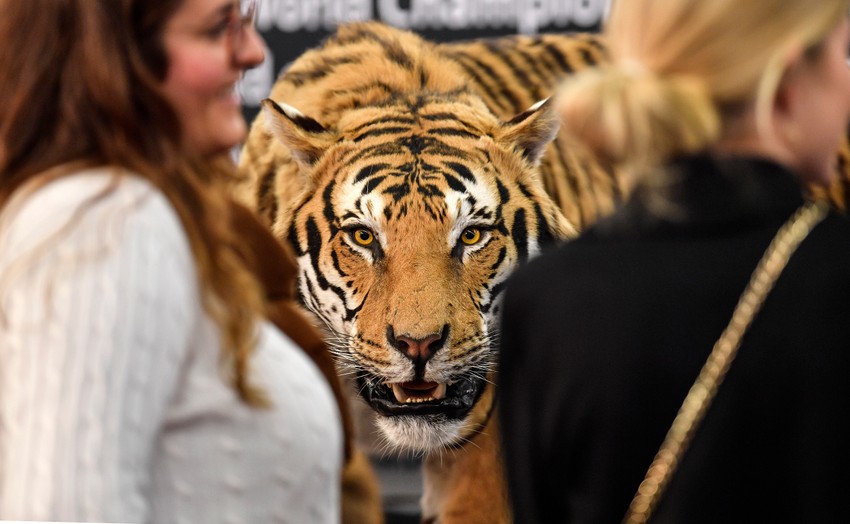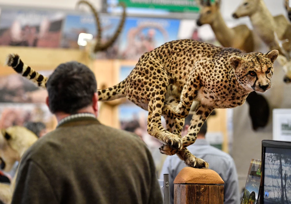 Na jednom štandu prodavali su fotelje tapacirane kožom zebre za nešto više od 1.000 evra, a na drugima jastuke od lisičijeg krzna, medveđe glave, preparirane geparde i podmukle zamke za hvatanje životinja.