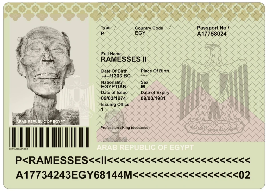 Mumiji faraona Ramzesa II izdat je važeći egipatski pasoš 1974. godine, skoro tri hiljade godina nakon njegove smrti, kako bi mogao da leti za Pariz.