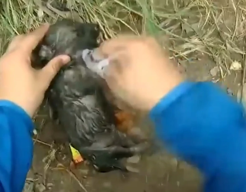 S obzirom na to da se i dalje mučilo da diše, neimenovani muškarac je brzo isekao jedan deo plastične flaše, oba kraja obložio maramicama, a onda jedan nežno postavio na glavu kučeta i dao mu svojevrsno veštačko disanje. Uskoro štene je uspelo da se pridigne, dugo se treslo, ali ga njegov spasilac nije napuštao.