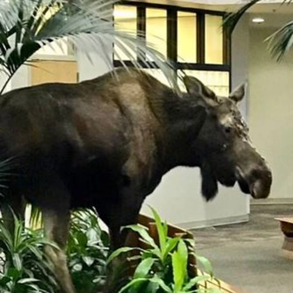Ogroman los zalutao je juče u zgradu bolnice u Enkoridžu, najvećem gradu na Aljasci, a čim je ušetao, namirisao je "užinu" - dekorativno bilje u holu, dok su pacijenti i zaposleni u čudu i strahu posmatrali životinju pozamašne veličine.