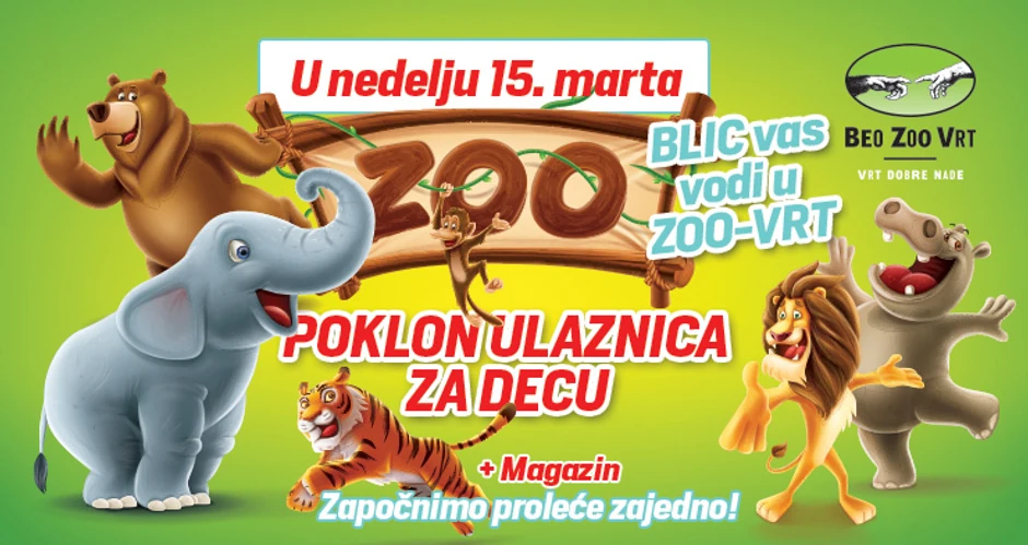 U nedelju 15. marta "Blic" poklanja čitaocima besplatnu ulaznicu za Beo zoo vrt! Iskoristite prve prolećne dane i obiđite naš najveći i najstariji zoološki vrt.