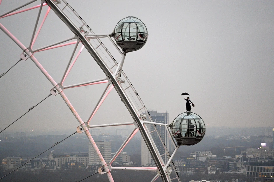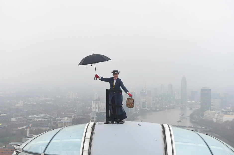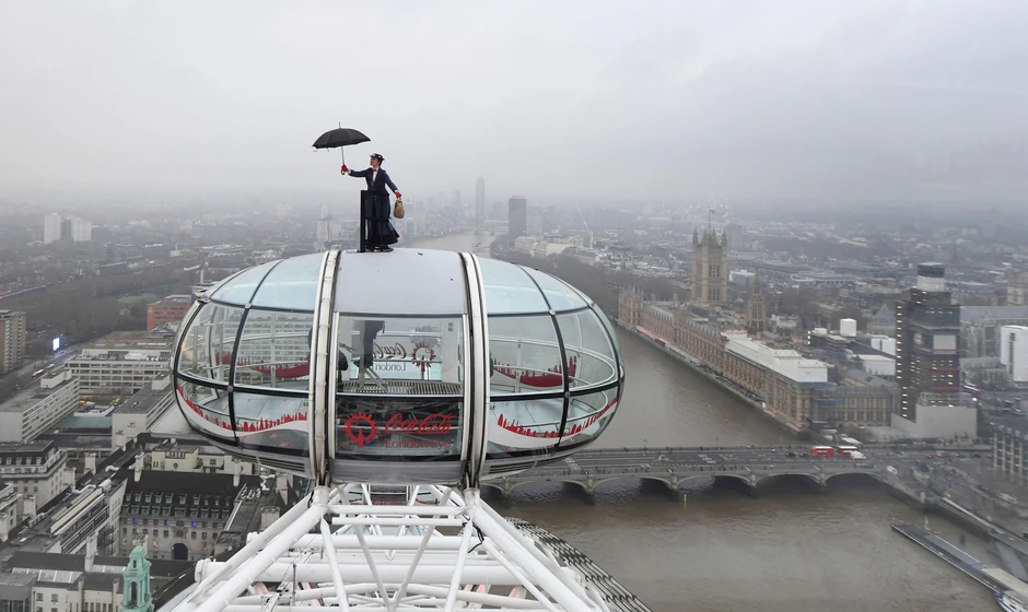 Posetioci čuvene panorame u Londonu ostali su bez reči kada su na kabini jednog od simbola ovog grada, videli najpoznatiju svetsku dadilju svih vremena, Meri Popins, kako sa kišobranom i koferom izlazi na vrh kapsule.