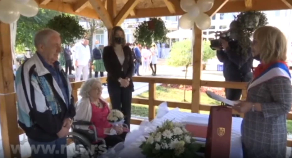 Oko 170 korisnika Gerontološkog centra u Kruševcu, kao i zaposleni, imali su veliki povod za slavlje - venčanje i dugo očekivanu svadbu mladenaca koji su prošle godine preležali i koronu. Prvo Dragana, a ta njom i Stamenko. u tim danima, fizičko prisustvo i razmenu nežnosti, zamenili su dopisivanjem preko telefona, kao zaljubljeni tinejdžeri, što i jesu u neku ruku, makar kad pogledate njihove oči dok se gledaju.