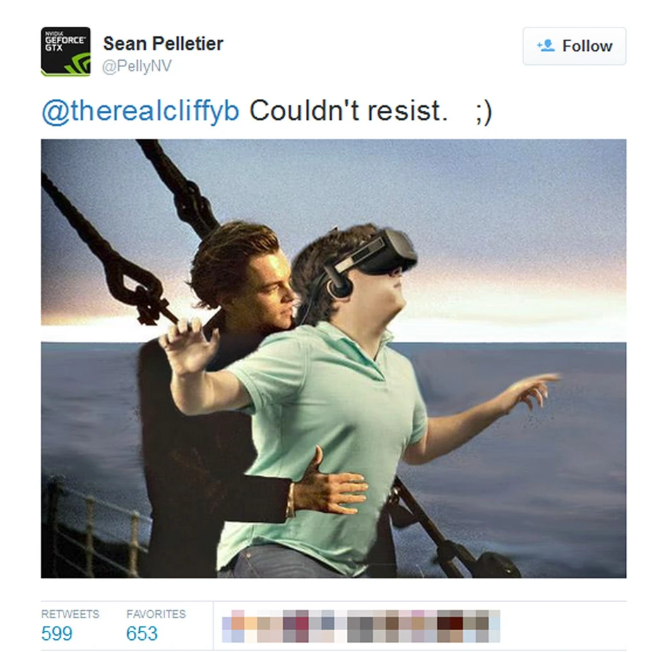 Jedna od najduhovitijih je fotomontaža poznate scene iz "Titanika", u kojoj je Palmer zauzeo mesto Kejt Vinslet.