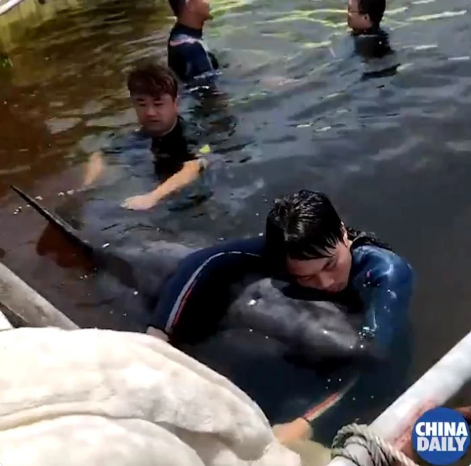 Herojem današnjeg dana kineski mediji proglasili su spasioca Lu Venhuija, koji je čak 10 sati proveo u vodi grleći prethodno nasukanog kita, kako bi mu držao glavu pod vodom i olakšao disanje.