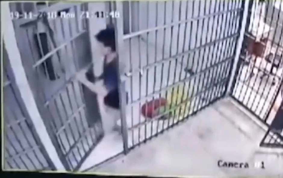 Bezbednosne kamere su zabeležile trenutke bekstva. Osumnjičeni je pobegao, a nije uspeo da ga stigne drugi policajac koji je potrčao za njim i sapleo se.