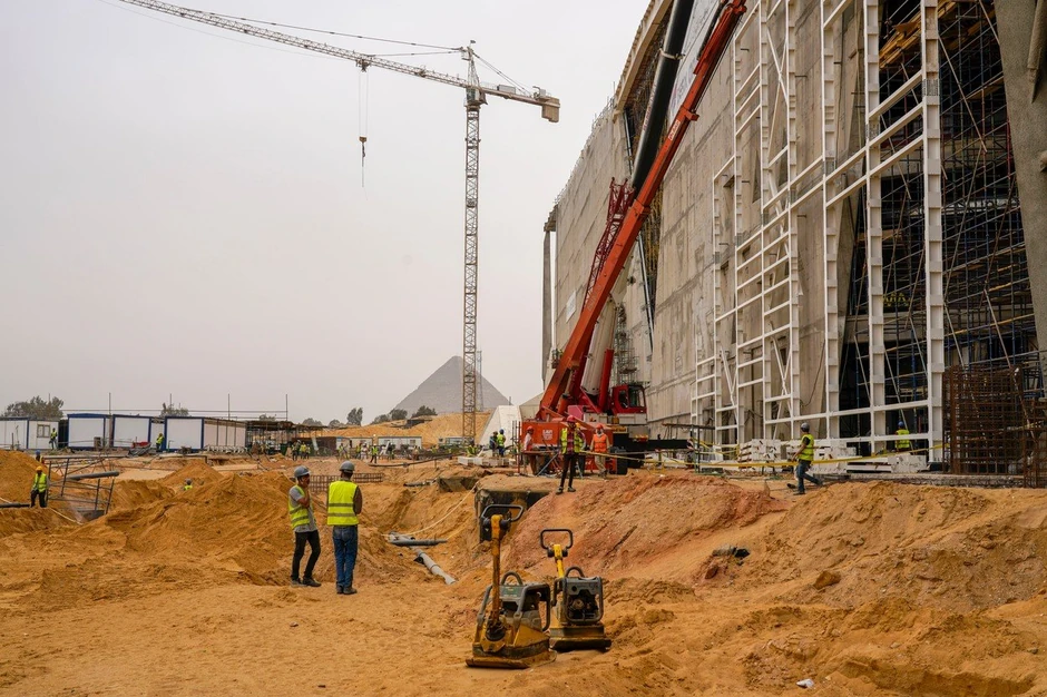 Nedaleko od drevnih piramida u Gizi oko 5.000 radnika radi 24 sata dnevno kako bi na vreme završili dugo očekivani Veliki egipatski muzej, koji treba da bude otvoren do kraja ove godine.