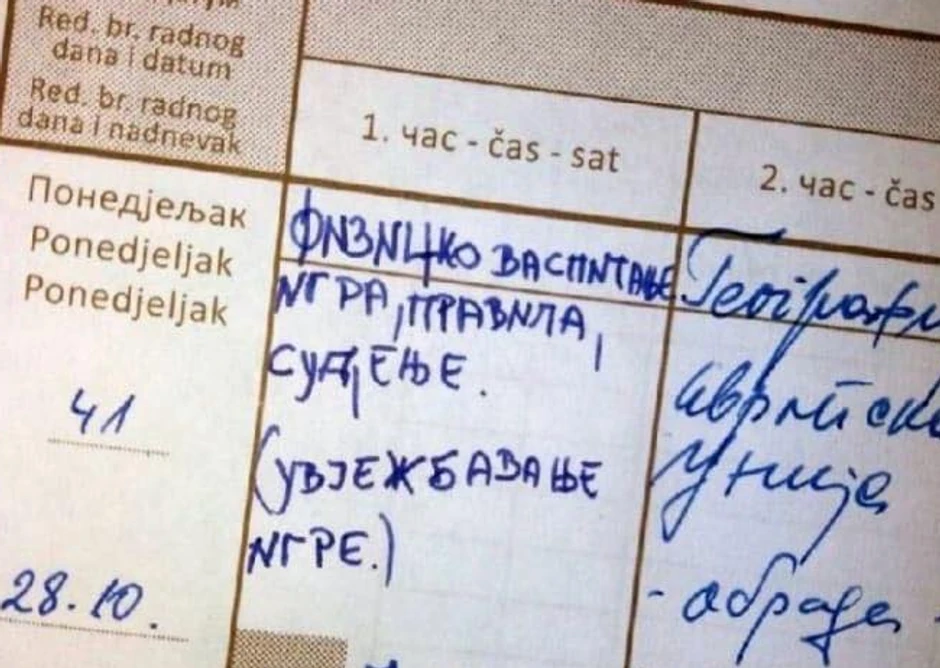 Jedan profesor iz Republike Srpske postao je meta šale na društvenim mrežama i to nakon što se na Fejsbuku pojavila fotografija njegovog popunjavanja školskog dnevnika.