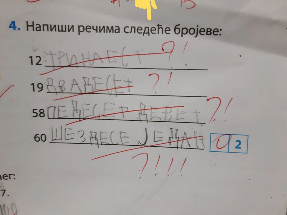 Naime, mališan je pogrešno protumačio šta se od njega traži u zadatku, te je umesto da slovima napiše brojeve koji su stajali ispred praznog polja, on je pod "napiši rečima sledeće brojeve" mislio da se radi o brojevima koji dolaze posle ponuđenih na početku zadatka.