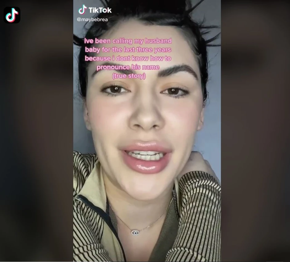 TikTok video jedne Amerikanke postao je viralan nakon što je u njemu priznala da mora da zove svog supruga "bebo", jer nije sigurna kako se pravilno izgovara njegovo ime.