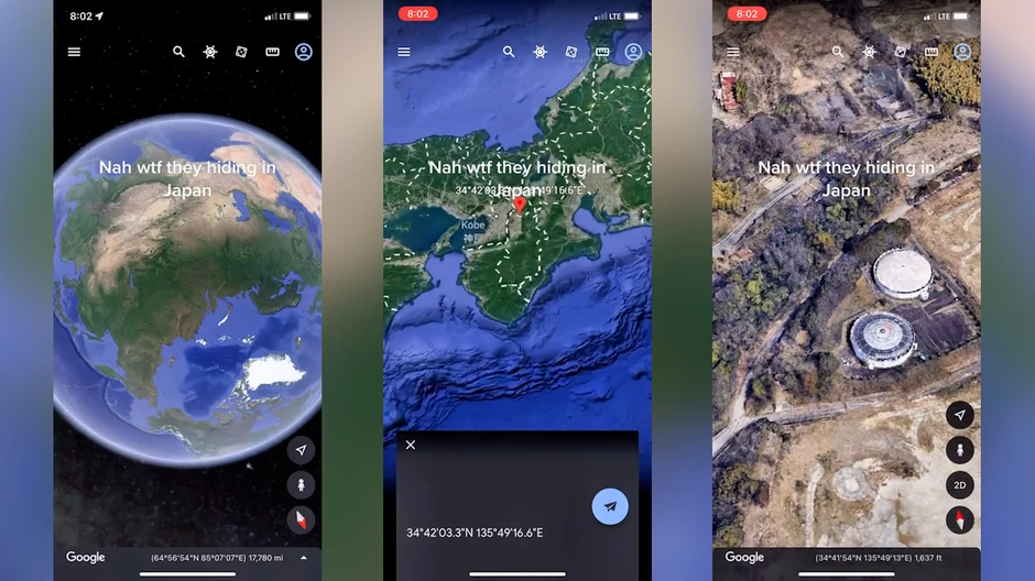 Na snimku se vidi kako neko traži koordinate u Japanu na Gugl mapama, što ga dovodi do zgrade pokraj mesta gde se nalazio vodeni park “Nara Dreamland”. TikToker zatim klikće na zgradu i prikazuje mu se pogled iznutra.
