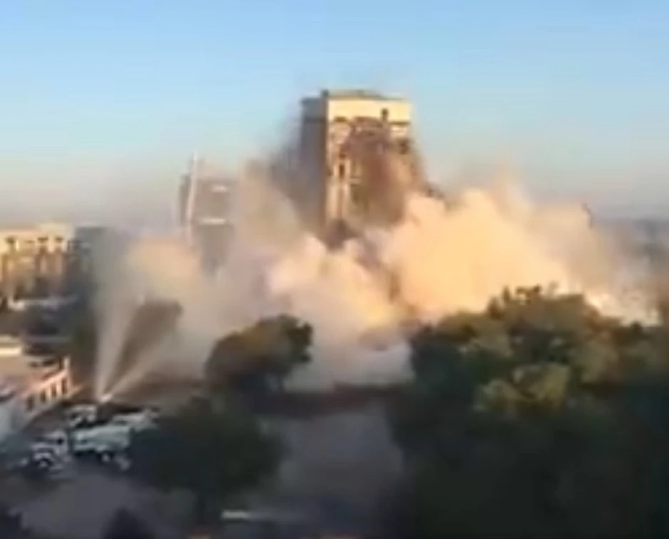 Rušenje kancelarijskog bloka od 11 spratova bilo je zakazano u nedelju ujutro. Eksploziv je postavljen prema planu, međutim dok su se dva krila zgrade urušila kako treba i pala na tlo, centralna kula – u kojoj su stepenice i liftovi – malo se iskrivila i ostala da stoji, preneo je RT.