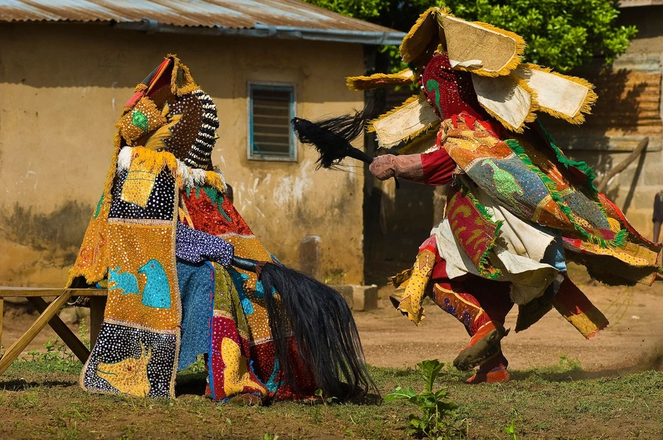 Meštani iz sela u afričkoj državi Benin veruju da mogu da stupe u kontakt sa svojim mrtvim precima. Članovi tajnog društva Egungun tada dolaze u sela maskirani, gde uz zvuke bubnjeva prenose poruke mrtvih. Veruje se da ukoliko ih neko dodirne, ubrzo će umreti kao i sam Egungun, piše Dejli Mejl. Tokom svog plesa oni postaju zaposednuti i tada pričaju na nepoznatom jeziku koji niko ne razume.