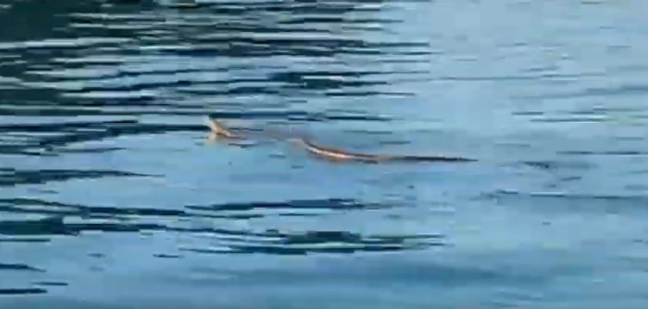 Na društvenim medijima u Hrvatskoj pojavila se fotografija zmije koja pliva u moru i pokušava da se popne na jedan katamaran između ostrva Kakan i Velog Borovnjaka u šibenskom akvatoriju.
