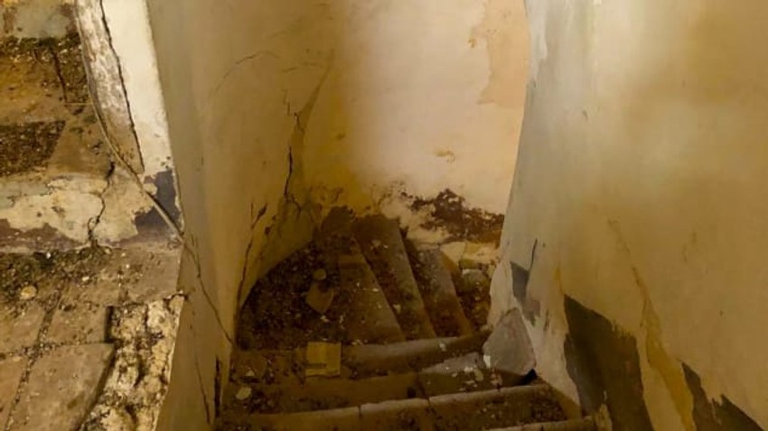 Kuća ima tri kupatila, pločice na plafonu, spiralne stepenice i dva ulaza.