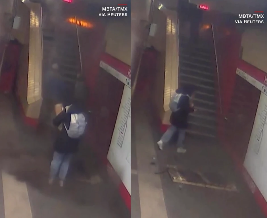 Naime, u snimku koji se pojavio, nakon što je veliki broj putnika krenuo ka stepenicama na stajalištu "Harvdard Skver", u jednom trenutku pored stepenica ploča plafona pala je ispred putnice koja se od straha ukočila, što joj je upravo pomoglo da izbegne veliku nesreću. Nakon pada ploče, na smiku se vidi veliki oblak prašine i razbijenih betonskih delova plafona.
