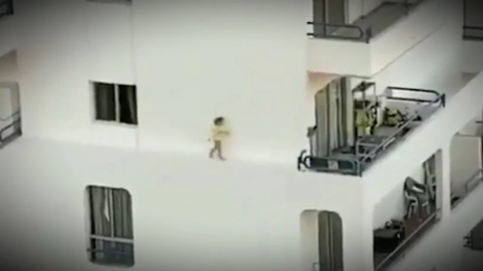 Turistkinja u Španiji snimila je dete kako hoda po uskoj ivici stambene zgrade gde se popelo preko balkona na četvrtom spratu.