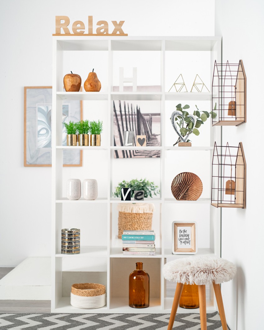 Počnite od police, koja ne samo da vam je neophodna za knjige, nego i za brojne dekorativne elemente. Pre svega, dobro je očistite i napravite izbor starih, ali i novih elementa koje ćete smestiti na policu, recimo saksije sa manjim biljkama.