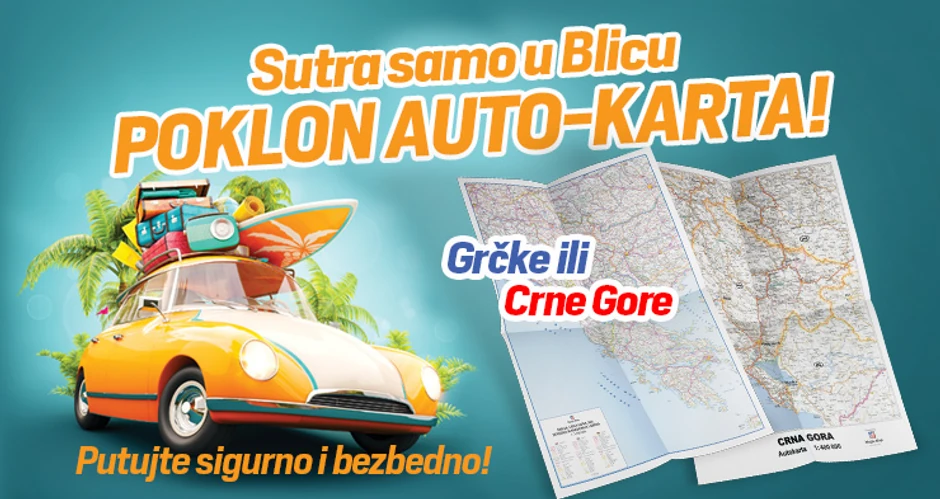 Kako bi vam putovanje učinio lakšim, "Blic" sutra zbog velikog interesovanja, svim čitaocima poklanja detaljne auto-karte Grčke i Crne Gore sa svim putevima, graničnim prelazima i važnim informacijama potrebnim za put.