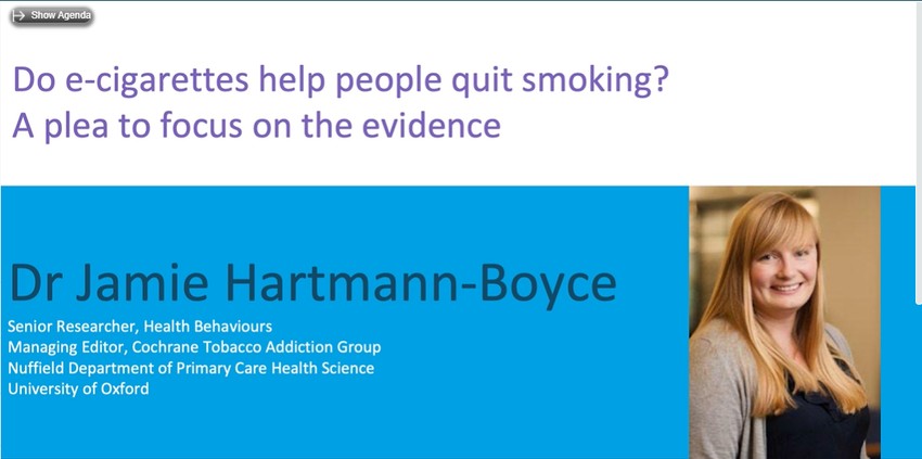 “Dok Nacionalna zdravstvena služba Velike Britanije i Centar za kontrolu i prevenciju bolesti Sjedinjenih Država podstiču prelazak sa tradicionalnih cigareta na manje štetne alternative, Svetska zdravstvena organizacija navodi da su i takvi proizvodi štetni za zdravlje, što šalje pomešane signale i zbunjuje ljude”, navela je dr Džejmi Hartman-Bojs, vodeća autorka Cochrane-ovog pregleda odvikavanja od pušenja. Prema njenim rečima, potrebno je usaglasiti stavove vodećih organizacija kako bi do 2030. godine živeli u svetu bez duvanskog dima.