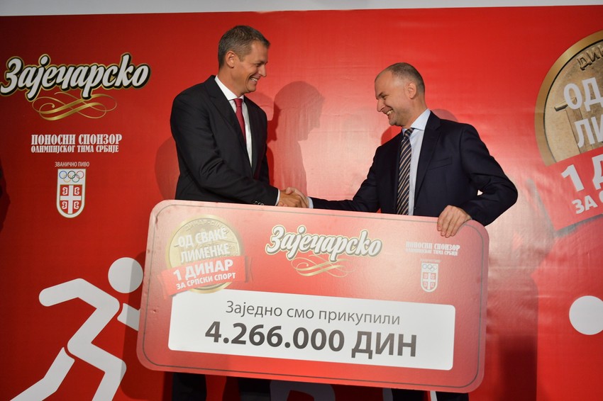 Zaječarsko pivo doniralo je 4.266.000 dinara, koji su u saradnji sa Olimpijskim komitetom i uz veliku pomoć građana Srbije, prikupljeni u akciji „Od Zaječara do Rija cela zemlja navija”. Sredstva su obezbeđena izdvajanjem 1 dinara od svake prodate limenke iz ograničene serije Zaječarskog piva, a namenjena su razvoju klubova čiji su sportisti pokazali najbolje rezultate.