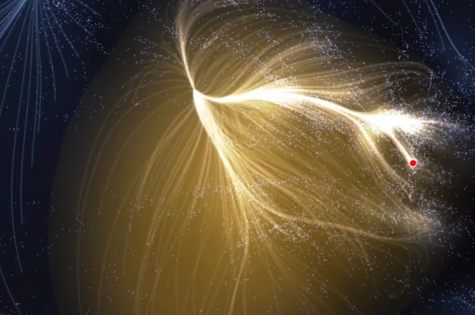 Ova crvena tačka pokazuje gde obitava naša galaksija. Ona je deo superklastera galaksija koji se naziva Lanijakea ili "nemerljivi raj".