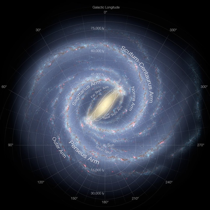 Pogledajte južno od centra naše galaksije Mlečni put i videćete malu tačku sa oznakom "Sunce". Tako izgleda naš solarni sistem u poređenju sa okruženjem.