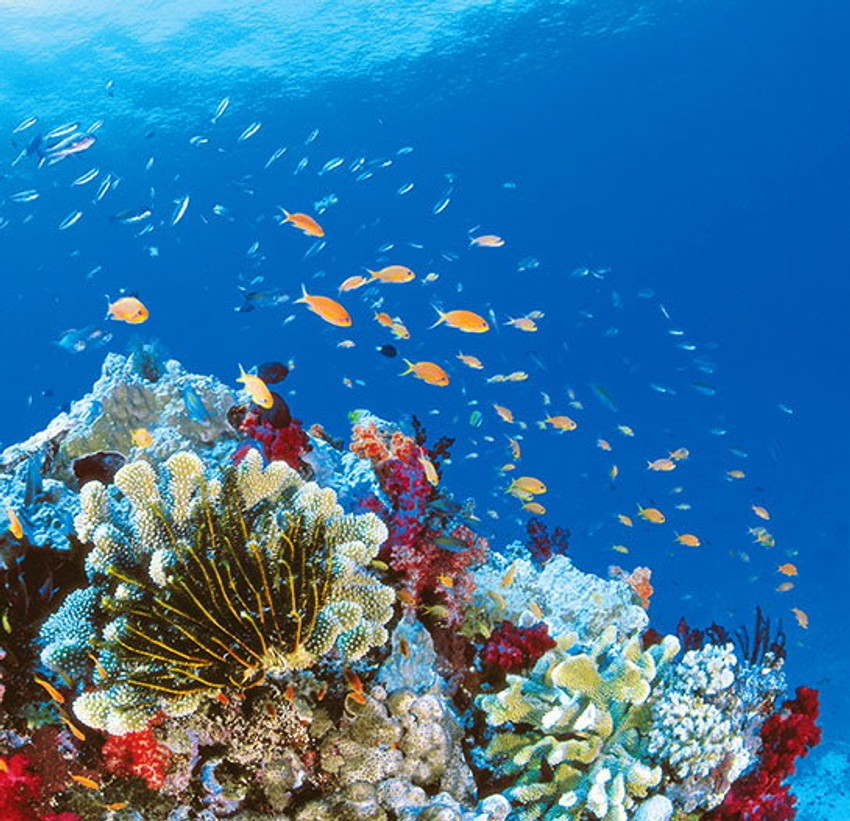 Najveći sistem koralnih grebenova, koji se nalazi u Koralnom moru, blizu obale Kvinslenda, na severoistoku Australije, i prostire se na dužini od oko 2.000 kilometara, sastoji se od 400 vrsta korala, na kojima živi više od 1.500 vrsta ribe i 4.000 vrsta mekušaca. Veliki koralni greben obuhvata 2.500 pojedinačnih grebenova i više od 900 ostrva.