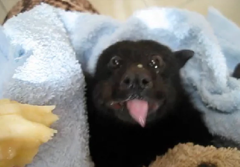 Video je snimila devojka iz jedne australijske organizacije koja spasava slepe miševe koji su se povredili ili su se negde zarobili, pa ne mogu da se izvuku. Zbog kiša i nepogoda, voće se obično štiti mrežama koje se postavljaju preko drveća, a ovaj mališa se baš u jednu takvu mrežu upleo.