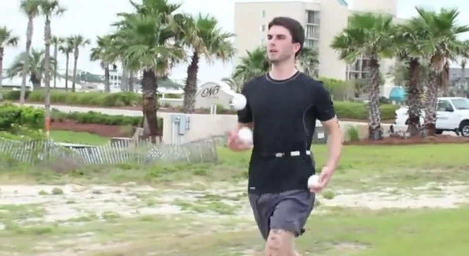 Dok je plivao i trčao u vazduh je bacao sa tri loptice, a dok je vozio bicikl, jednom rukom je upravljao, a drugom žonglirao sa dve loptice.