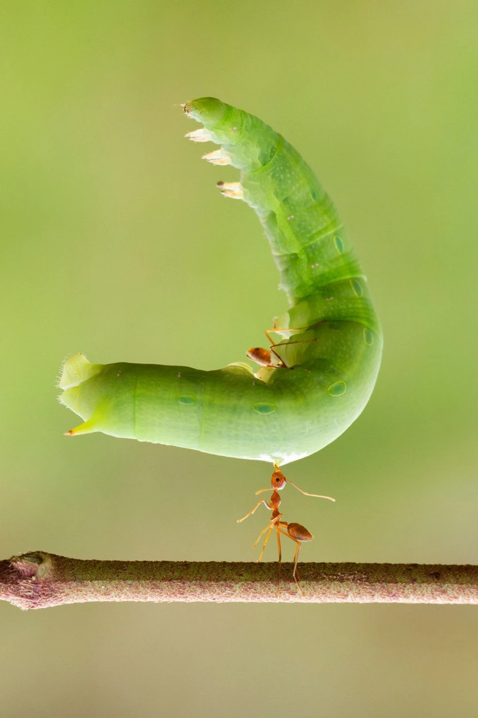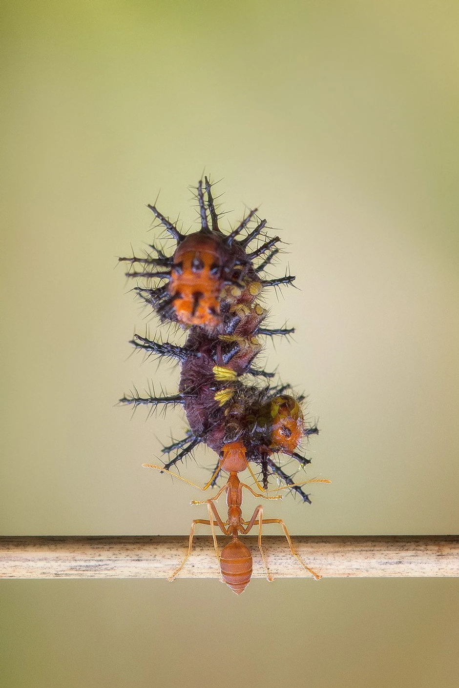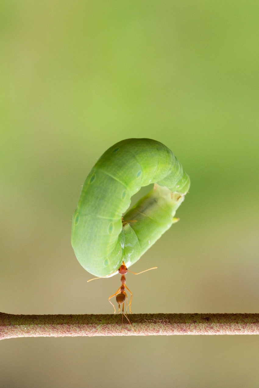 Mravi sa ovih fotografija su savladali gusenice koristeći samo usta.