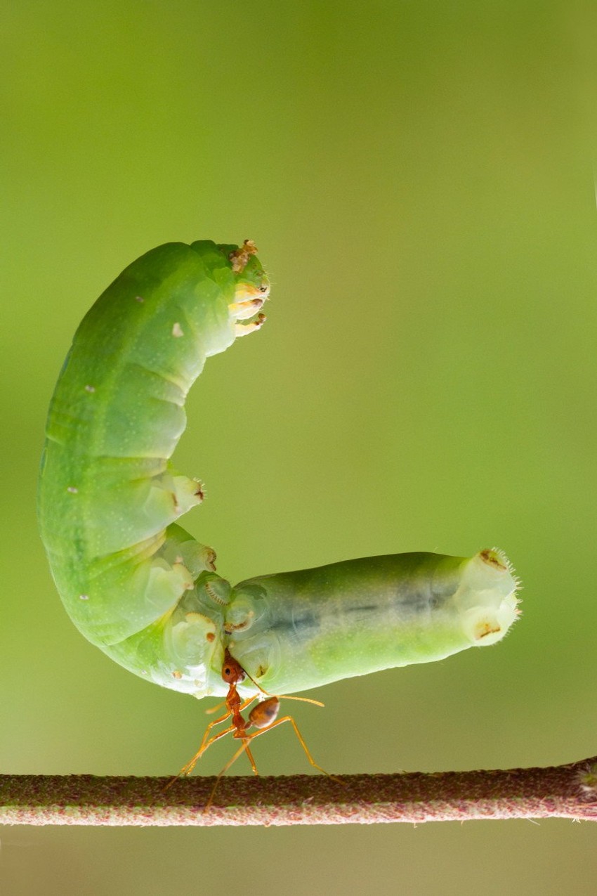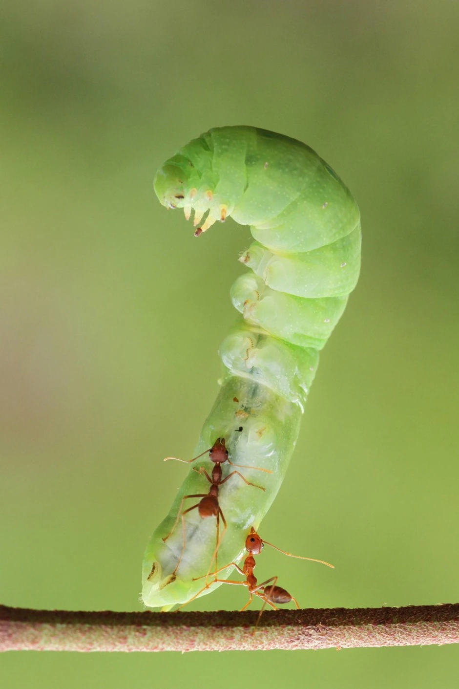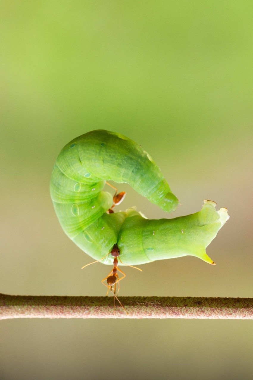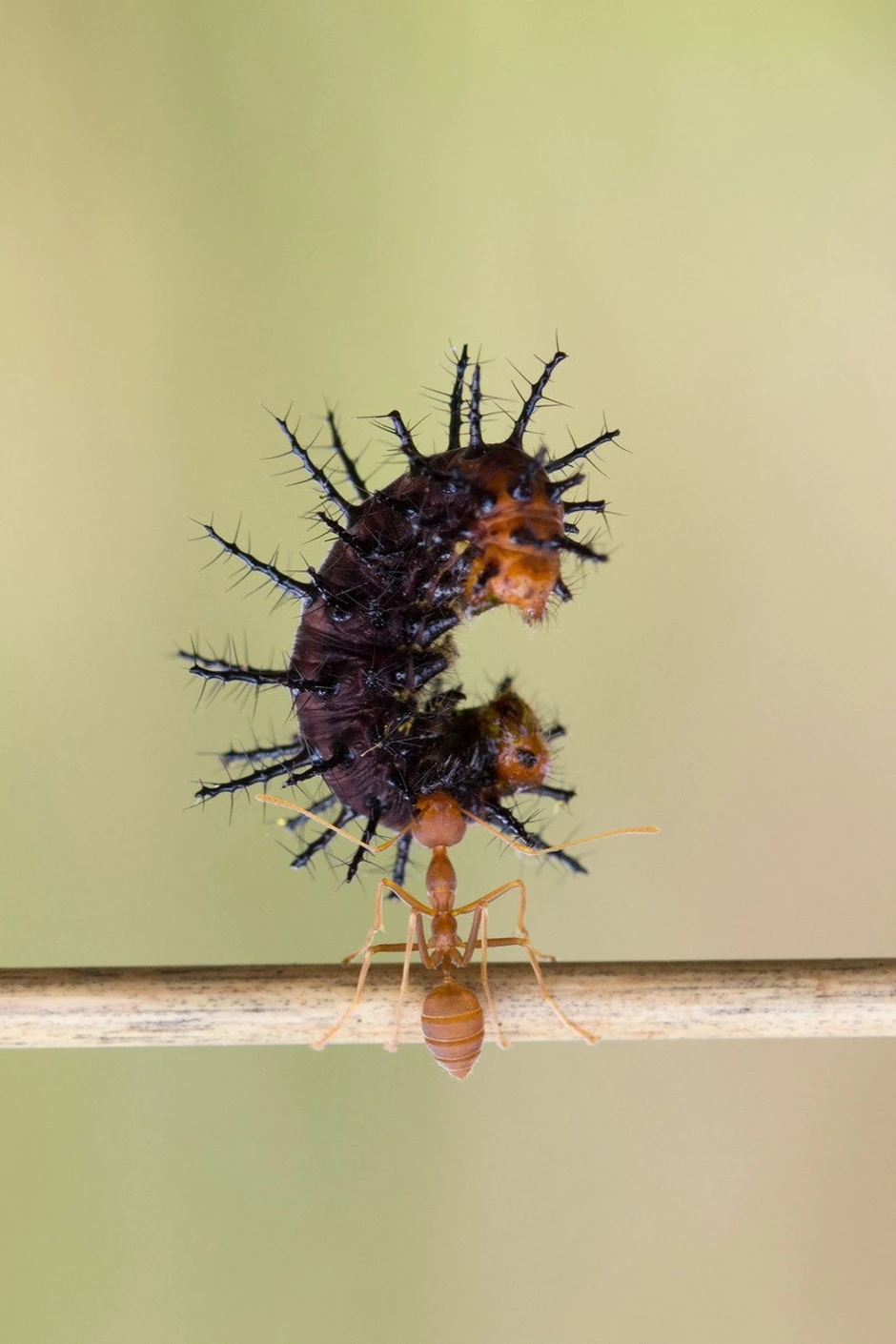 Mravi sa ovih fotografija su savladali gusenice koristeći samo usta.