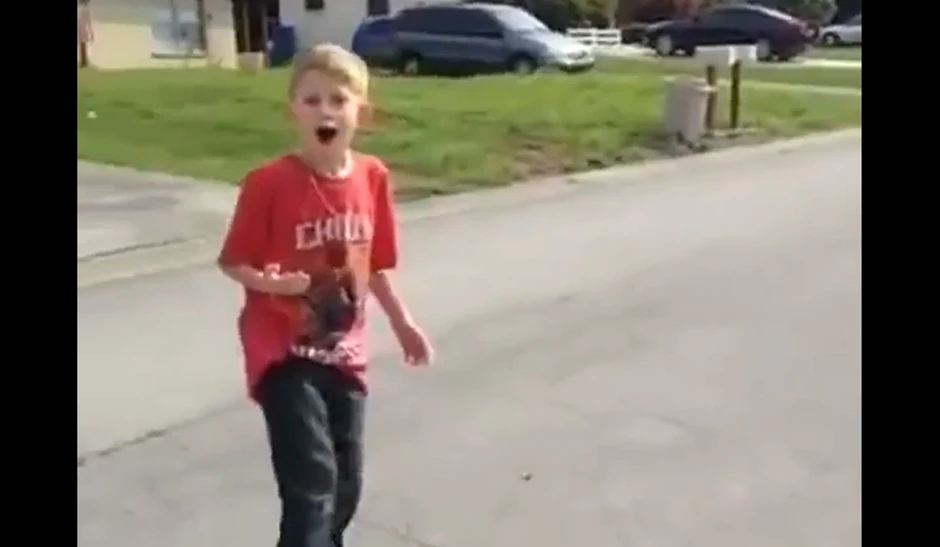 Video koji se nedavno pojavio na Jutjubu prikazuje dečaka koji hrabro stoji iza tatinog auta sa zubom zavezanim za njega. Kada tata da gas, zub ispada, a dečakova reakcija je neverovatna.
