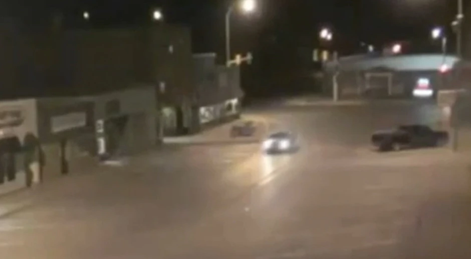 Incident je snimila bezbednosna kamera postavljena na vrhu zgrade u glavnoj ulici gradića Kavalir u Severnoj Dakoti.