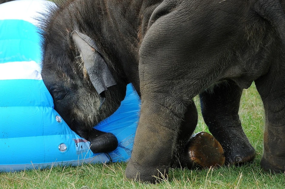 Maks, najmlađi stanovnik afričkog zoološkog vrta Vispnade dobio je na poklon pravu poslasticu od čuvara - bazen pun vode i mehurića od sapunice. Ipak, njegovo uživanje nije dugo potrajalo.