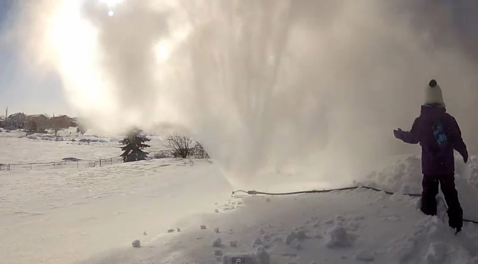 To se desilo 1. marta 2014. godine, kada je temperatura bila neverovatnih -34 stepeni, a zbog vetra je delovalo kao da je još hladnije. Kada su uključili prskalicu, ona je počela da ispušta veliku količinu pare koja je prelepo delovala na suncu, u dvorištu prekrivenim snegom.