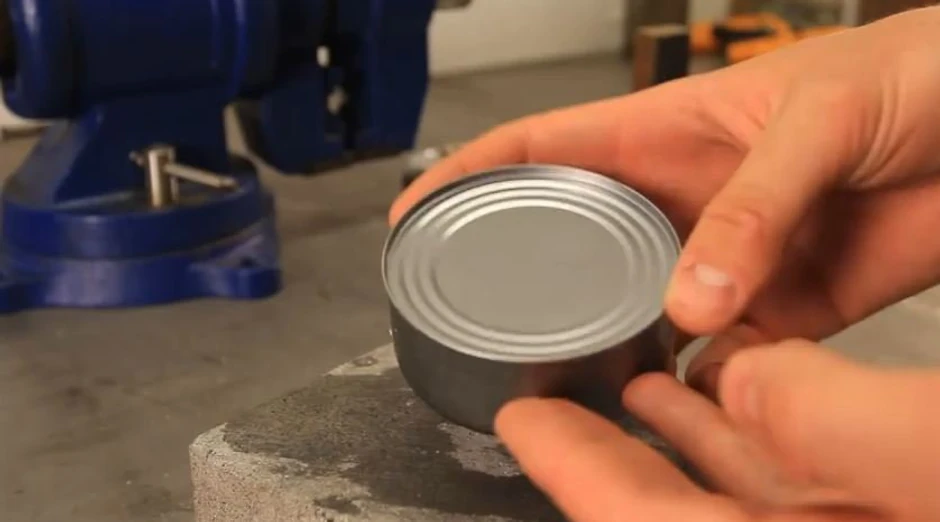 Potreban vam je samo beton koji možete naći čim iskoračite iz kuće. Uzmite konzervu i dobro je protrljajte o beton. Potom sa obe ruke pritiskajte konzervu sa strane i poklopac će sam iskočiti.