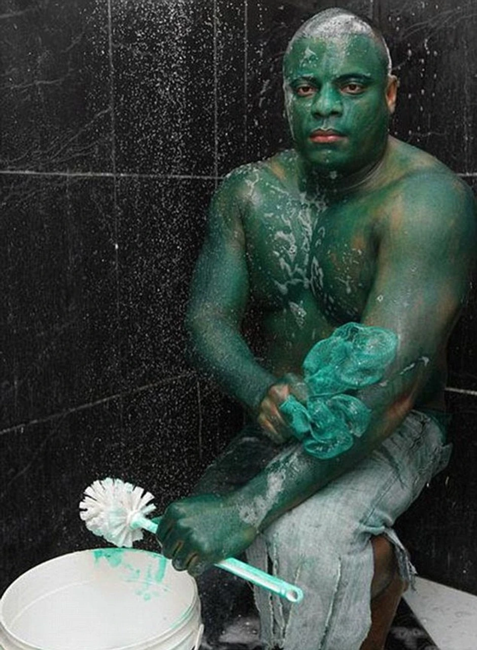Nakon velikog broja neuspešnog ribanja boje, Brazilac je otkrio da se namazao bojom koja služi za farbanje balističkih raketa i nuklearnih podmornica.