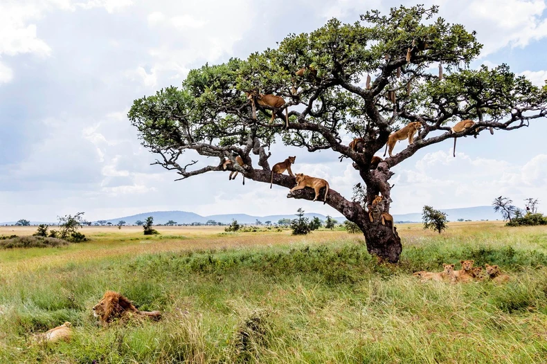 Bobi Džo Klou, fotograf iz Australije, zabeležila je svojim aparatom neverovatan prizor sa desetak velikih i malih lavova kako se odmaraju na stablu i granama, dok im noge i repovi lenjo vise.