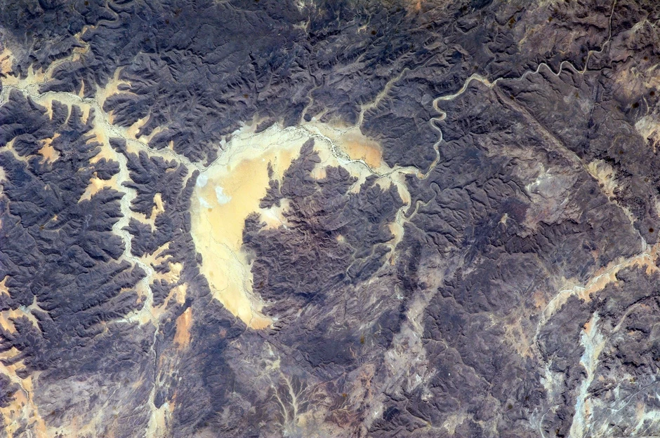 Na ovoj fotografiji se vidi krater iz Čada nastao pre oko 360 miliona godina. Prečnik ovog kratera iznosi 14 kilometara.