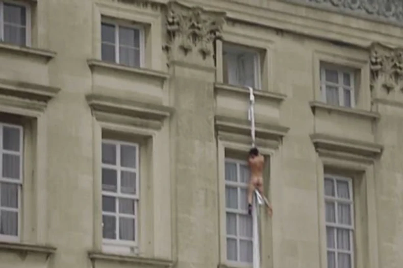 Više ljudi u Londonu je danas videlo neobičan prizor – nagog muškarca koji se spušta čaršavom iz jedne od prostorija u Bakingemskoj palati, prenosi Mirror.