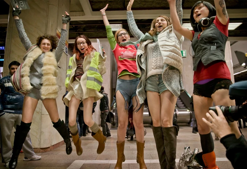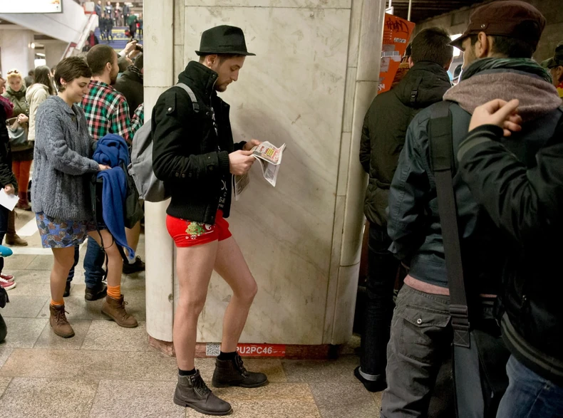 Podzemna železnica u Njujorku, Berlinu, Pragu, Milanu i mnogim drugim gradovima juče je bila prepuna ljudi u donjem vešu. Uprkos niskim temperaturama, i ovogodišnji "Dan bez pantalona" je obeležen širom sveta.