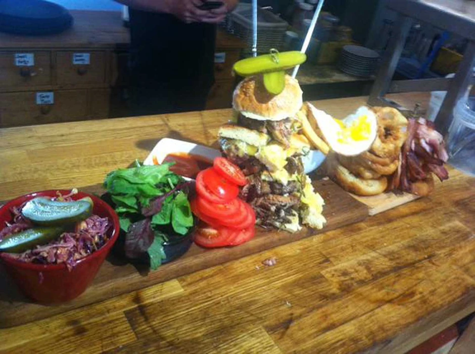 Hamburger koji u sebi sadrži kilogram mesa, 12 kolutića od luka, pola kilograma krompira i salatu jedan je od najvećih hamburgera napravljenih u Velikoj Britaniji, ako ne i najveći. U sebi sadrži čak 6.000 kalorija.