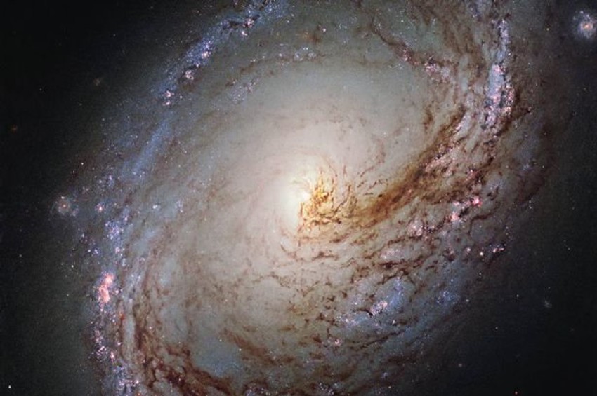 “Galaksija podseća na ogroman vrtlog svetlećeg gasa i tamne prašine koja se kovitla prema jezgru”, navodi se na Nasinom sajtu.