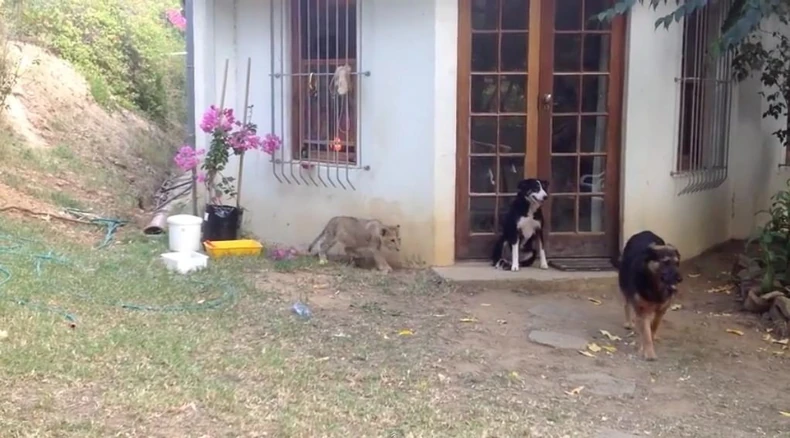 Velike mačke i psi žive u harmoniji na farmi za dresiranje životinja za snimanje filmova i reklama, blizu Kejptauna u Južnoafričkoj Republici.