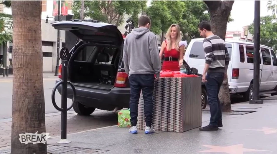 Jedna skrivena kamera napravila je zabavnu Božićnu šalu za prolaznike u Los Anđelesu. Naime, seksi Baba Mrazica je pokušavala da pomeri veliku kutiju iz automobila, zbog čega su prolaznici zastajali da joj pomognu. Ali, onda je usledio šok.
