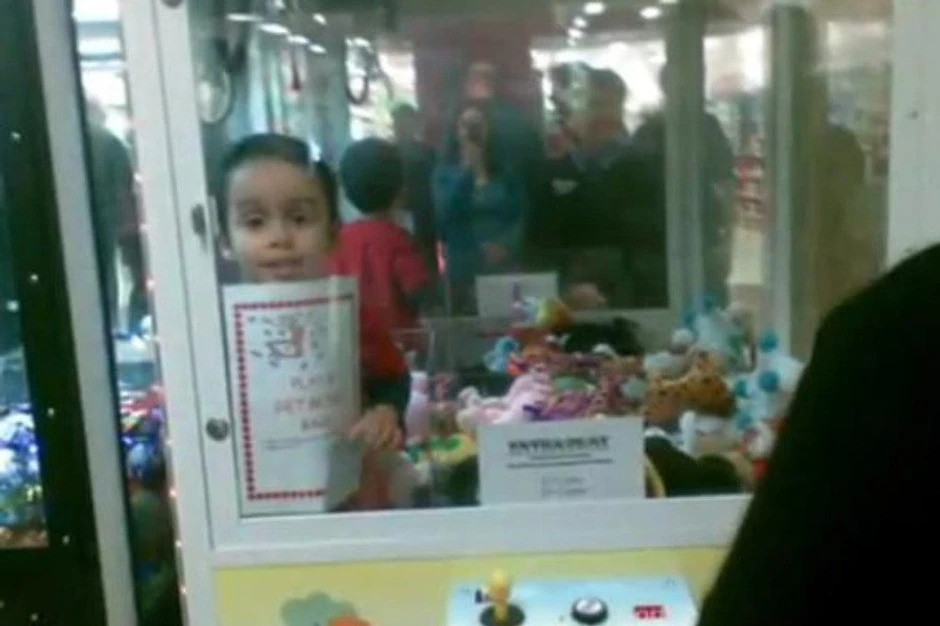 Tajler ima tri godine. Iskoristio je trenutak mamine nepažnje i uvukao se u automat za igračke jer je želeo plišanog tigra.